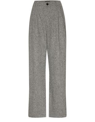 Anine Bing's Carrie pants feature an ankle length design with a buttoned and concealed zipper closure. They include belt loops, side pockets, a back pocket, and welt pockets. The front pleating adds sophistication, while the logo at the back label provides a subtle branding detail.