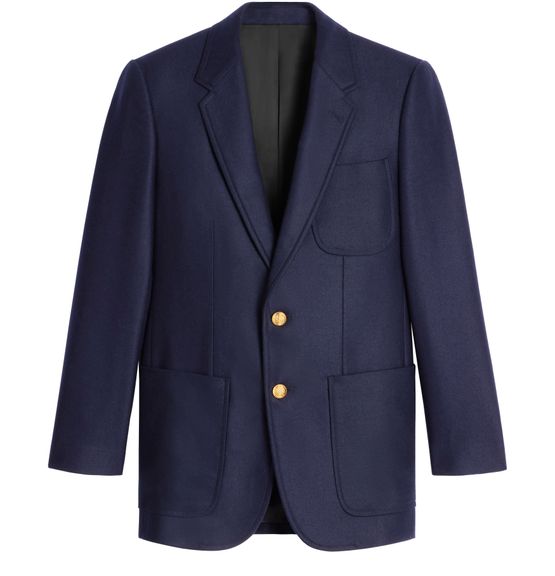 Celine's Cashmere flannel classic jacket redefines sophistication with its classic fit and tailored design. Featuring a notch collar, shoulder pads, and a rounded patch pocket, it effortlessly blends style and functionality. Crafted in Italy, this jacket boasts elegant Celine blason buttons and hidden interior pockets, making it a timeless wardrobe staple.