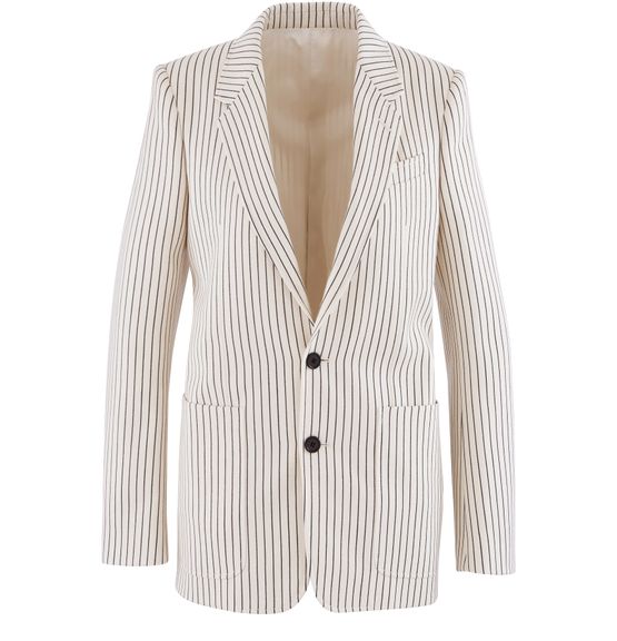 • Description : Classic jacket with patch pockets, made of blended wool with stripes.