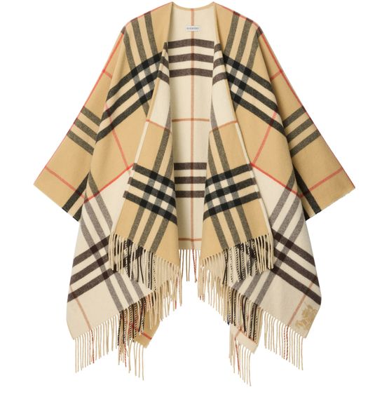 Reveal Burberry's check fringe cape, a statement piece defined by its iconic Burberry Check and refined fringe details. The long sleeves and printed logo add a modern touch, while its versatile design ensures effortless styling for both casual and elevated occasions.