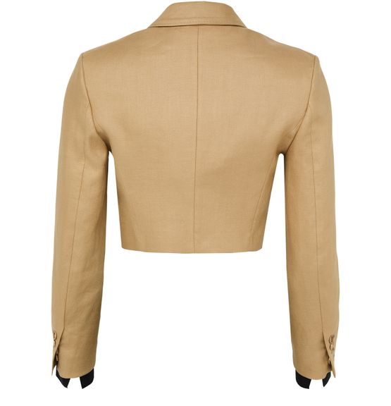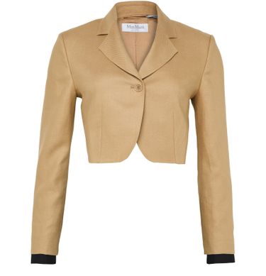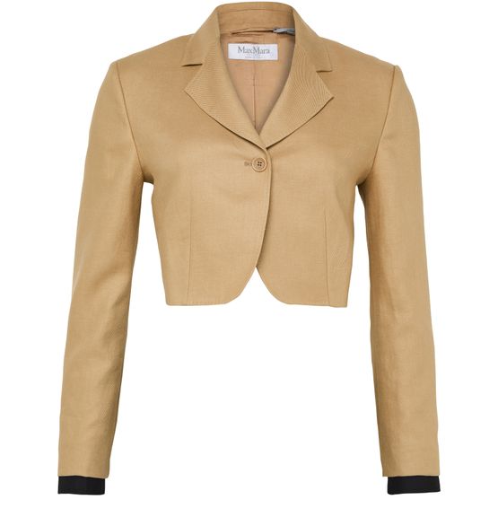 Reveal Max Mara's cropped single-breasted blazer, defined by its short silhouette and refined collar. The long sleeves and button fastening create a timeless look, while the classic tailoring ensures versatility for both day and evening wear. A polished essential for modern wardrobes.