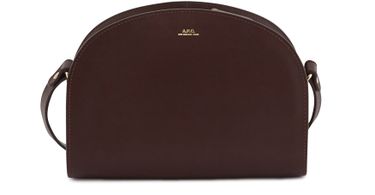 APC's Demi-Lune Bag exudes timeless elegance with its gold logo in bold letters on the front. It features a thin strap with a gold finish and a zipper closure. This versatile bag can be worn on the shoulder or crossbody with its single handle, making it a practical and chic accessory.