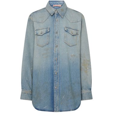 This long-sleeved denim shirt from Acne features a logo at the back label. With a regular length and front buttoned closure, it has button fastening, cuffed sleeves, flap pockets, and buttoned cuffs. The shirt collar adds a classic touch to this versatile wardrobe essential.