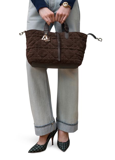Reveal Dior's Medium Dior Toujours Bag - a blend of elegance and practicality. Featuring a double closure with a lace-through strap and CD Lock clasp, it boasts pale gold-finish D.I.O.R. charms. Adjustable leather handles and a removable interior pouch complete this sophisticated accessory. Dust bag included.