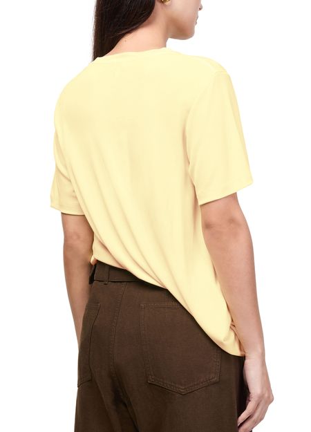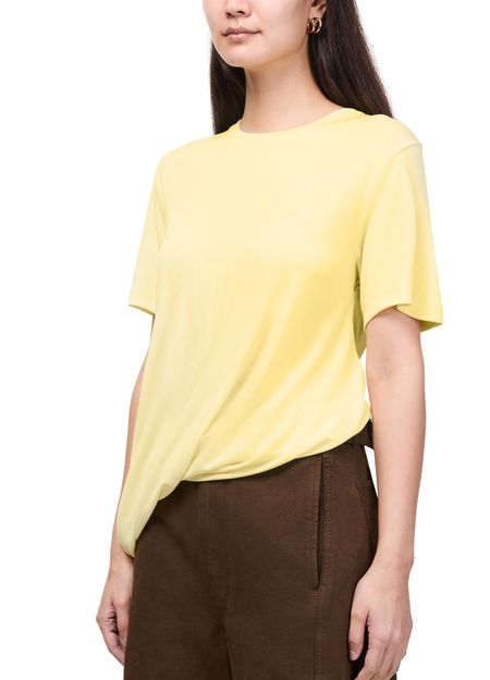 Reveal Loewe's draped viscose top, where an artful asymmetric drape with hand-gathered details meets a refined crew neck and short sleeves. The fluid silhouette and soft texture make this top a standout piece, perfect for elevating both casual and sophisticated ensembles.