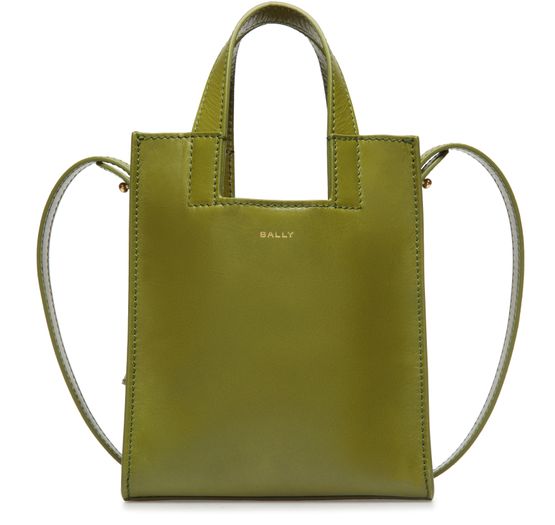 Reveal Bally's Easy XS tote bag, designed with double handles and a thin, adjustable strap for versatile carrying. The front logo and visible stitching showcase refined craftsmanship, while the detachable strap adds functional flair. This crossbody and shoulder style blends modern elegance with everyday practicality.
