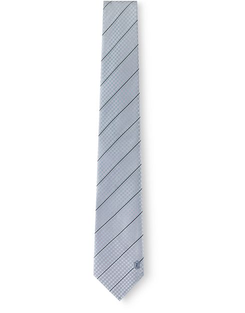 The stylish Ecu tie combines Petit Damier checks with a contrasting narrow stripe in shiny silk. It is finished with the LV initials in a discreet escutcheon.