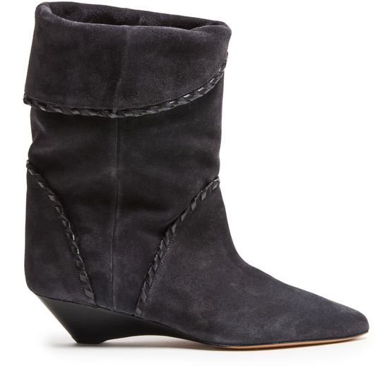 Unveil Isabel Marant's Edoa ankle boots, crafted in sumptuous suede. These boots boast a sophisticated pointed toe and a comfortable wedge heel, blending style with practicality. The closed design ensures a snug fit, making them the perfect choice for a chic and polished look.