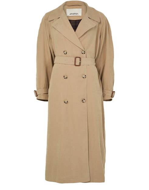 Unveil Isabel Marant's Elea coat. This regular fit trench coat features a long silhouette with a collar neckline and long sleeves. The double-breasted closure adds a timeless touch, making it perfect for both casual and formal occasions. Elevate your wardrobe with its versatile elegance.