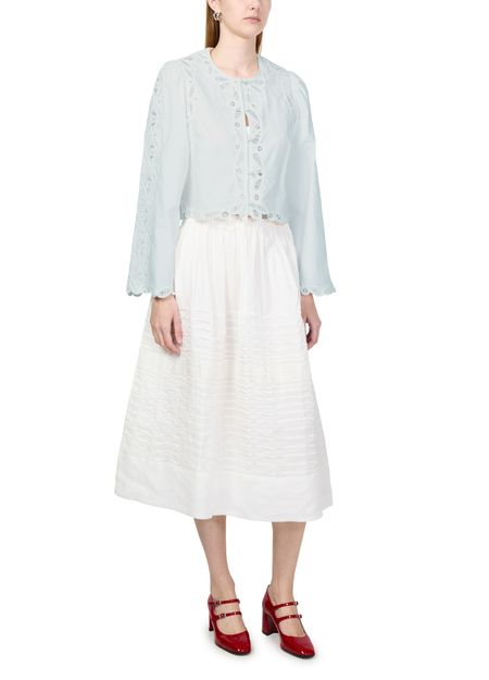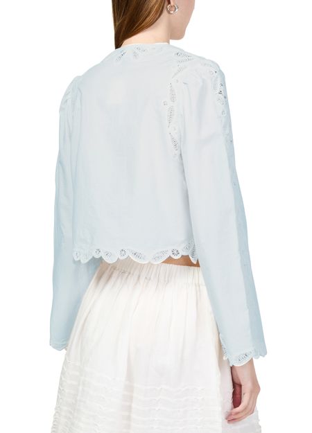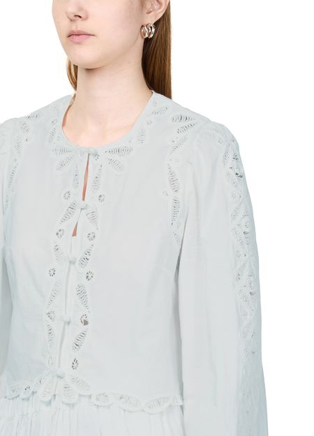 Unveil the Sea New York Elke Soutache long sleeves blouse, a masterpiece in modern style. This blouse features a graceful round neck and long sleeves, offering a loose fit for comfort. Its button fastening adds a sophisticated touch, making it a perfect choice for versatile styling.