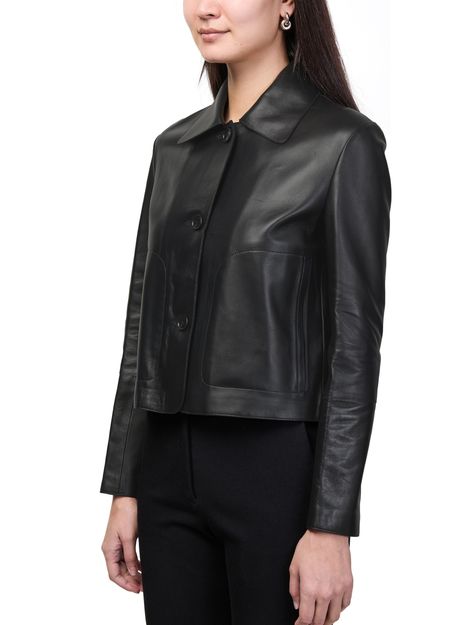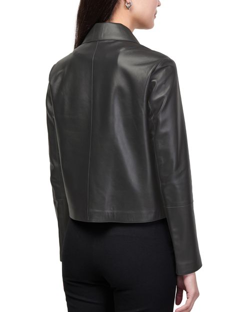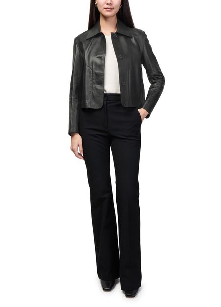 Reveal Arma's emy lamb leather jacket, a short silhouette crafted from supple lamb leather with a refined button fastening. Long sleeves and practical side pockets add functionality, while the sleek design ensures effortless versatility for both casual and elevated looks.