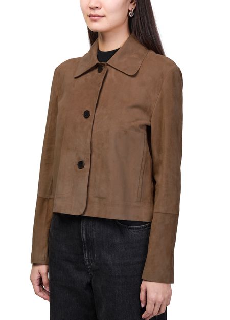 Reveal Arma's emy suede jacket, crafted from supple suede for a refined touch. The short silhouette and front buttoned closure create a sleek, modern profile, while long sleeves add versatility. Perfect for elevating both casual and sophisticated looks with effortless style.