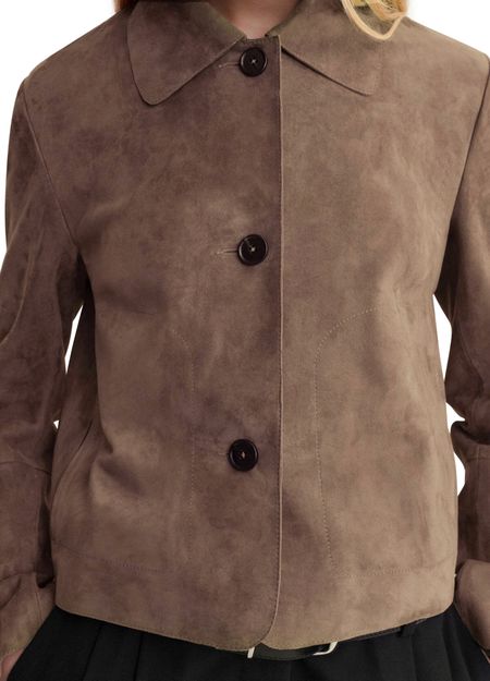 Reveal Arma's suede casual jacket, a short silhouette with refined button fastening and long sleeves. The soft suede texture and distinctive patch detail add a modern edge, making this piece effortlessly versatile for both relaxed and elevated looks.