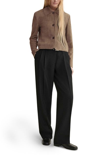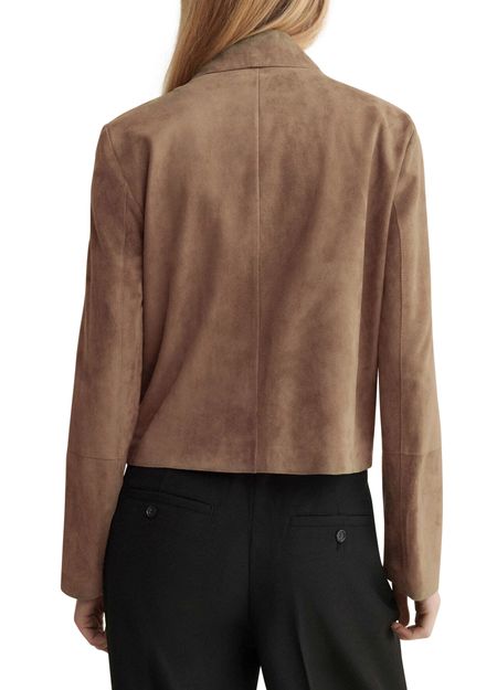 • Description : Suede, short, long-sleeved, button fastening, patch detail.