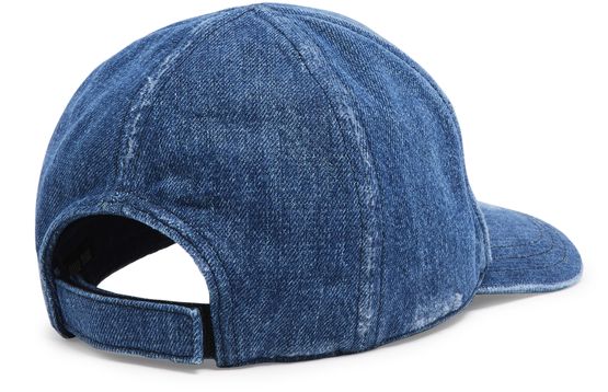 Miu Miu's faded denim cap showcases a round crown and a curved visor, perfect for casual outings. Adorned with embroidered details and a striking logo at the front, this cap effortlessly combines style and functionality. Elevate your look with this chic accessory that embodies the spirit of modern fashion.