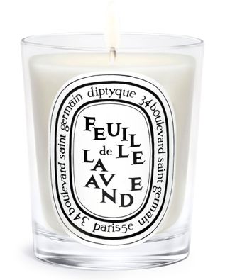 The Feuille de Lavande (Lavender Leaf) candle evokes a summer sky, and lavender bushes perched on the hillsides of Haute Provence.