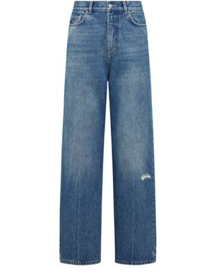 Unveil Dior's flared jeans stonewashed cotton denim with belt loops and a concealed zip and hook closure. The rear tonal Christian Dior Paris jacron label adds a touch of sophistication, while its unlined construction ensures comfort and flexibility for a modern wardrobe staple.