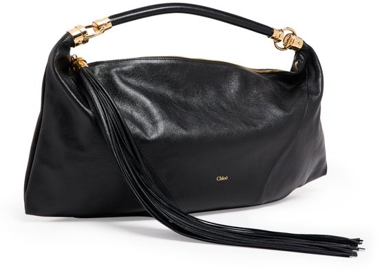 • Description : zipper closure, gold finish, single handle, front logo, logo in gold letters, visible topstitching, hand carried, wide strap.