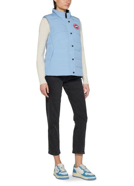 Freestyle Vest offers a sleek, slim fit design with a mockneck and sleeveless style. It features a concealed zipper and snap fastening, along with side pockets and an interior pocket for storage. Adorned with the iconic chest logo, this piece is designed to resist temperatures ranging from 5°C to –5°C.