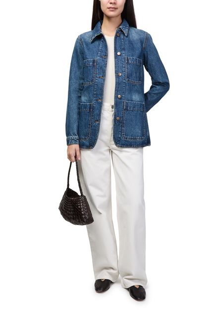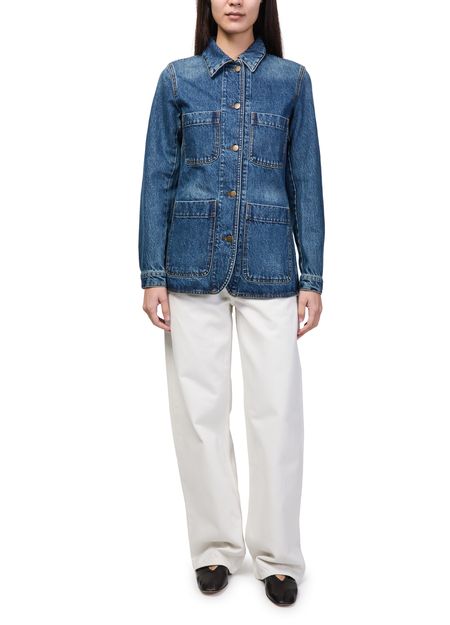 Reveal Soeur's Garry denim jacket, a modern take on the classic trucker silhouette. Crafted from premium denim, it features a front buttoned closure, long sleeves, and patch pockets for everyday practicality. Topstitched edges add a refined finish, making it a versatile piece for effortless styling.