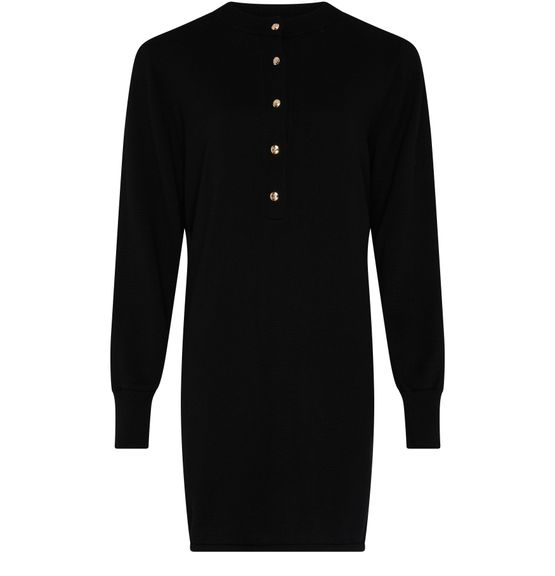 • Description : front buttoned closure, gold finish, appliquéd logo, visible stitching, mini dress, long-sleeved, crew neck, knitted dress, cuffs, cuffed sleeves.