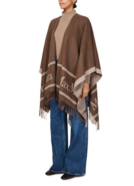 Introducing the Max Mara Hilde cape, a three-quarter-sleeved marvel adorned with fringe details. This stylish piece is accentuated by a front logo, effortlessly blending elegance and modernity. Experience its versatility, perfect for both casual outings and formal events, making it a must-have addition to your wardrobe.