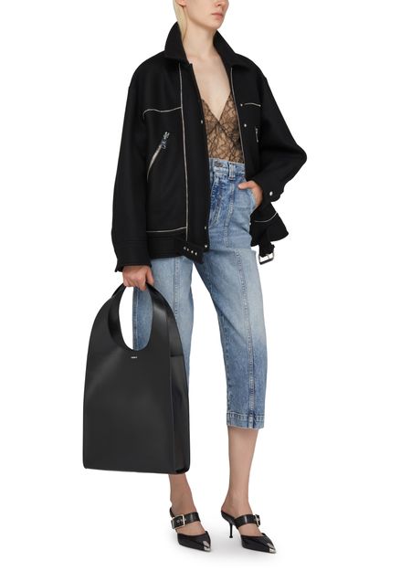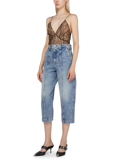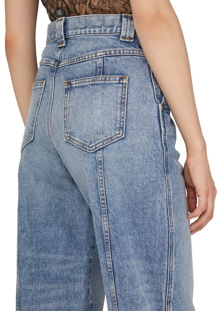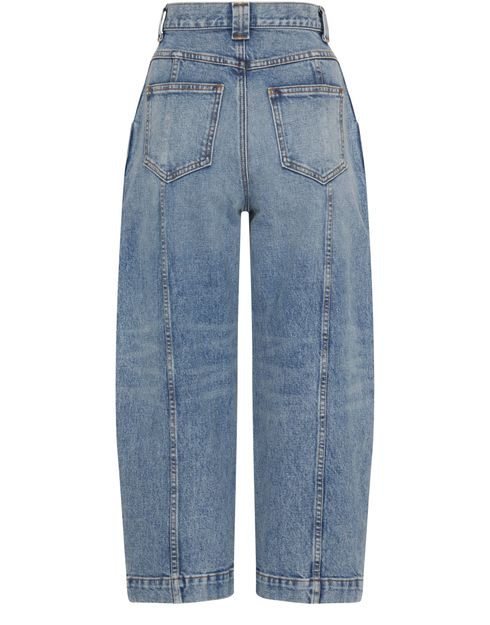 Khaite's Hugo jeans are a classic addition to any wardrobe. These straight-cut jeans feature side pockets, belt loops, and a concealed zipper for a clean look. The faded effect adds a stylish touch, and the loose fit provides comfort without sacrificing style. A timeless and versatile choice for any occasion.