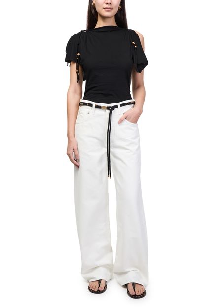 Reveal Isabel Marant's linen boatneck top, a refined piece featuring a graceful boatneck and short sleeves. The lightweight linen fabric offers a breezy feel, while the minimalist silhouette ensures effortless pairing with tailored trousers or casual denim for a polished, modern look.