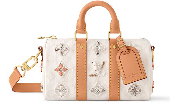 This Keepall Bandoulière 25 bag is made from Monogram Seashell denim paired with natural-leather trim, bringing a vintage Louis Vuitton feel. The off-white denim base gives a laid-back, summer-vacation vibe while the Monogram Flowers and LVs, made of crystals, resin seashells and pearls, attest to the House’s exquisite craftsmanship.
