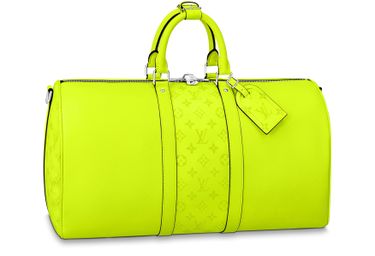 Part of the Taigarama leather travel line, the Keepall 50 Bandoulière bag is made from Taiga cowhide leather with Monogram canvas, the same color as the leather, on the sides and front. This cabin-friendly carry-on features an inside zipped pocket and a matching leather name tag. A removable and adjustable strap enables shoulder carry.