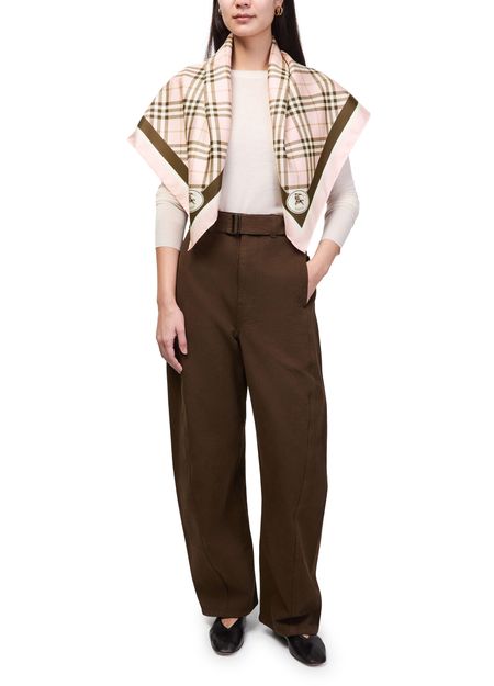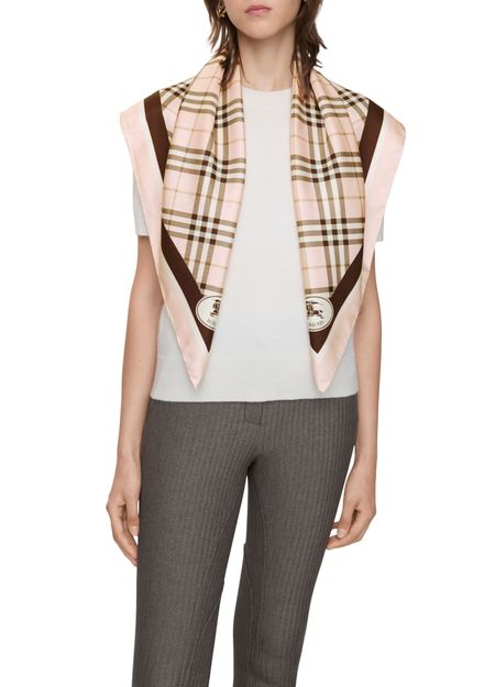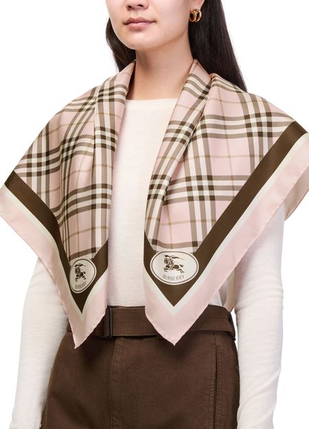 Reveal Burberry's silk scarf, a statement piece featuring an all-over print and a distinctive front logo. This refined accessory effortlessly elevates any ensemble, blending timeless design with a modern edge for a polished, trend-forward look.