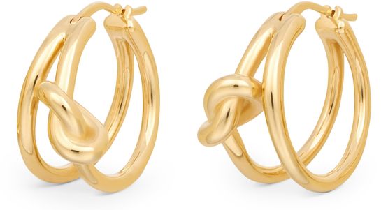 Elevate your style with Celine's Knot double hoops, crafted from brass and finished in luxurious gold. These exquisite earrings, designed for pierced ears, showcase an engraved Celine's signature, adding a touch of sophistication. Perfect for any occasion, they effortlessly blend elegance with modern flair, making them a must-have accessory.