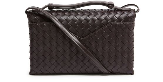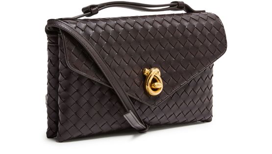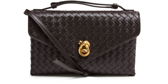 Reveal Bottega Veneta's crossbody bag, a testament to refined artistry with its signature Intrecciato weaving technique. The sleek single handle and thin strap offer versatile carrying, while the flap closure and gold finish add a polished touch. Experience functional elegance with a discreet back pocket and leather interior.