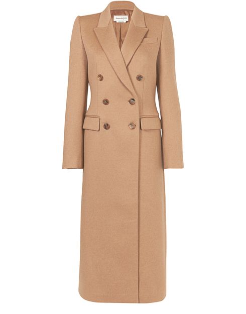 Elegantly highlighting the feminine silhouette, this maxi coat by Alexander McQueen has a refined and harmonious look with its collar, double row of buttons and fitted waist.