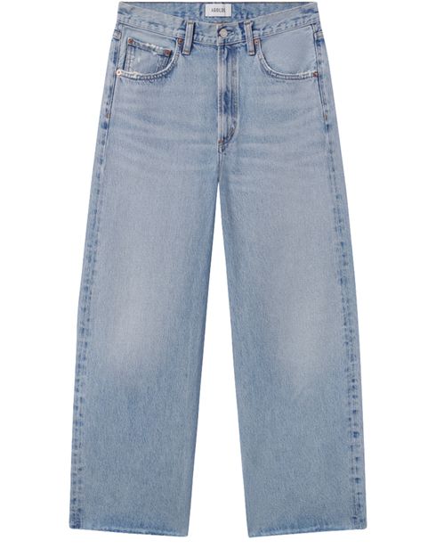 • Description : five-pocket style, buttoned and concealed zipper closure, visible stitching, belt loops, ankle length, loose fit.