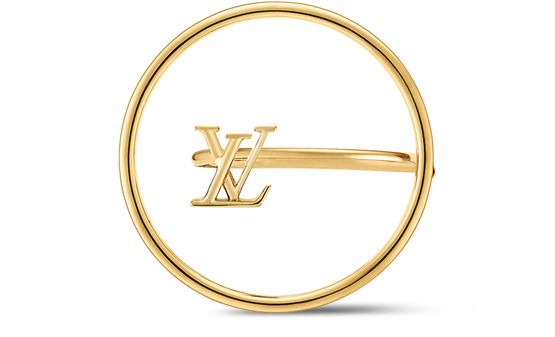 The LV Eclipse bague features a polished metal finish and minimalist design. The eye-catching ring displays the iconic LV Initials within a large circle that rests atop the fingers. This item is part of the Fall-Winter 2022 LV Eclipse Collection, which sees the LV Initials rotate around a circle as if in orbit.