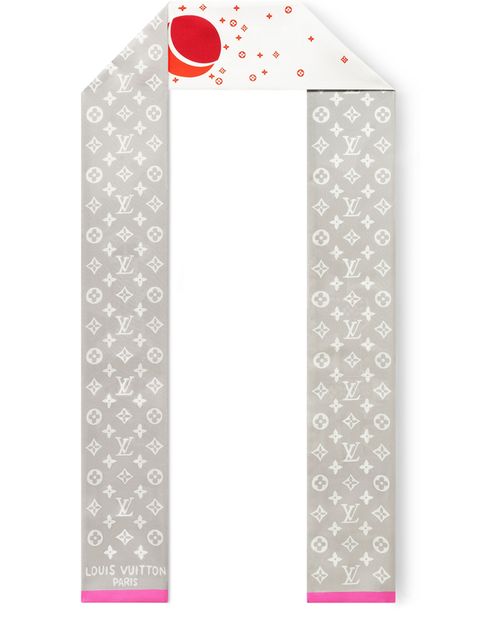 The LV Visionary bandeau showcases a colorful Parisian landscape as seen from a window. The creative scene is depicted in the style of a painted work of art, complete with House motifs embedded into the illustration. The reverse of the bandeau features the Monogram pattern for a classic touch.