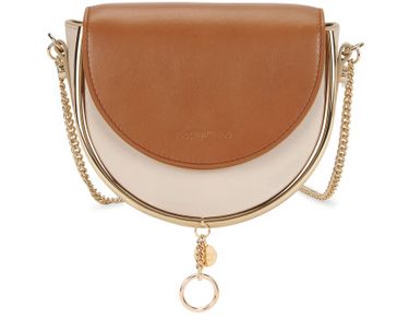 Stylishly romantic, the Mara evening bag reflects the image of its creator, See By Chloé. The crescent shape is emphasized by the gold tone edge with its cascade of charms.