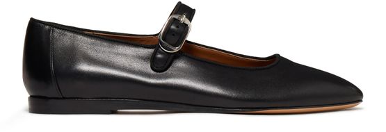 Le Monde Beryl's Mary Jane ballet pumps showcase a pointed toe and closed design, perfect for chic elegance. The engraved logo adds a touch of sophistication, while visible stitching highlights artisanal craftsmanship. Slip into these timeless shoes, effortlessly elevating any outfit with their blend of comfort and style.