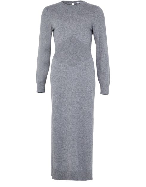 Discover Givenchy's dress in cashmere with open back , a masterpiece with a round neck and long, cuffed sleeves. Its elegant cut ensures a striking silhouette, perfect for any grand occasion.