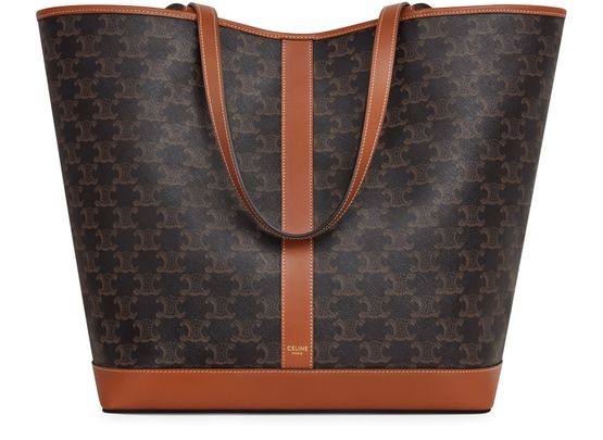 Celine's Medium cabas in Triomphe canvas and calfskin is a perfect blend of elegance and functionality. With its chic design, it features a spacious main compartment and a zipped pocket for essentials. The luxurious gold finishing adds a touch of glamour, making it ideal for both shoulder and hand carry.