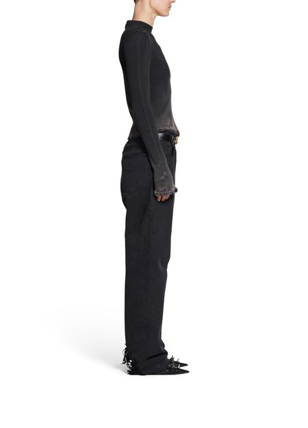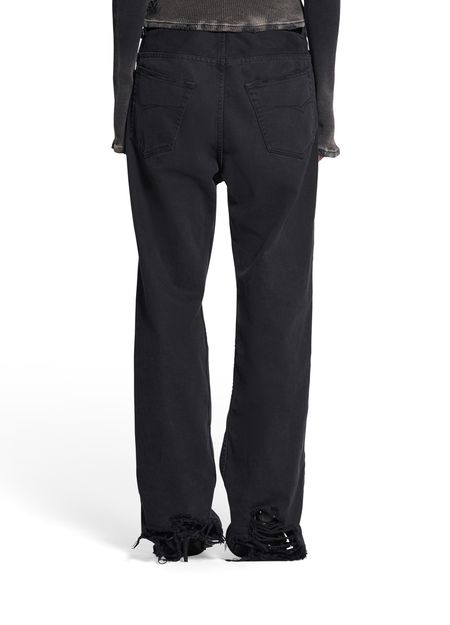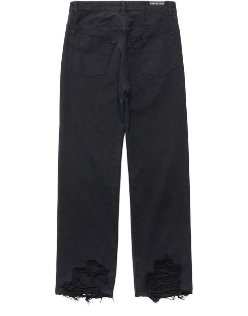 • Description : Soft black left hand denim, this item is unisex, medium fit, mid-waist, covered zip fly, 5 belt loops, 5 pockets, destroyed at back hem, balenciaga engraved flex buttons, balenciaga inlaid patch at back.
