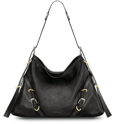 Givenchy's Medium Voyou bag in leather is a versatile and stylish accessory with an adjustable handle and buckled straps for a customizable fit. Featuring a front logo and gold finish, this bag can be worn on the shoulder or crossbody for a chic and practical look.