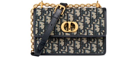 Indulge in Dior's Miss Caro mini bag Dior Oblique jacquard, featuring a CD twist clasp, two main compartments, a zip compartment, three card slots, an exterior slip pocket, and an adjustable chain in leather and gold-finish metal CD links.