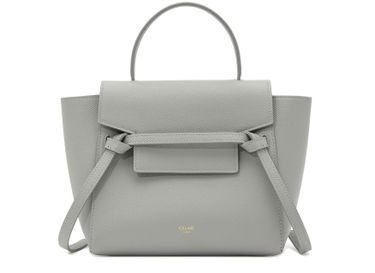 Celine's Nano belt bag in grained calfskin is a versatile companion, effortlessly transitioning from hand carry to shoulder or cross-body styles. With its elegant flap closure featuring a hidden metallic piece and zipped pocket beneath, this bag combines functionality with luxury. The removable leather strap and chic handle add to its allure.