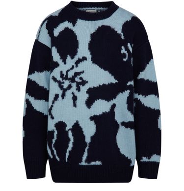 Description : Knit sweater, round neck, long sleeves, cuffs, ribbed, bi-color jacquard pattern, oversized shape, boxy fit.
