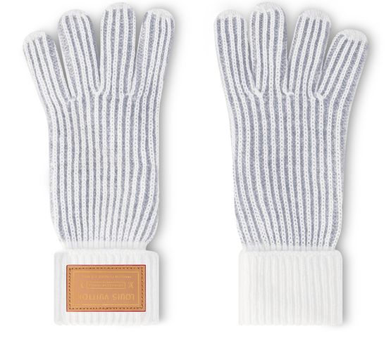 The eye-catching look of the Neverfull knit gloves was inspired by an iconic striped pattern from the Flight Mode collection. Two colors of cashmere yarn are intertwined using the sophisticated vanisé technique, resulting in a plush, sumptuous texture. And for a distinctive signature, a leather patch with the inscription “Article de Voyage” in gold recalls Louis Vuitton’s travel heritage.