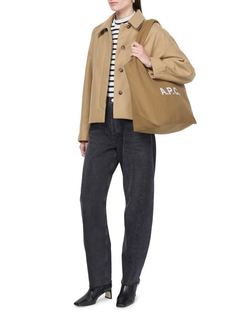APC's Ninon tote bag combines style and practicality with its double handles and wide strap, allowing for versatile carrying options. The front logo and printed logo add a touch of sophistication, while the visible topstitching enhances its durability. Perfect for hand carrying or worn on the shoulder, it suits any occasion.