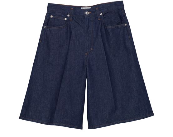 • Description : five-pocket style, buttoned and concealed zipper closure, contrast stitching, belt loops, knee length.
