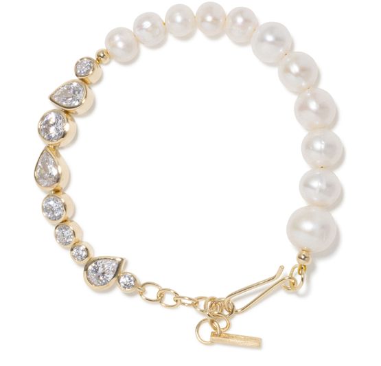 Embrace CompletedWorks's pearled bracelet, a sophisticated piece adorned with studded and bead details, showcasing a gold finish. This exquisite bracelet epitomizes modern elegance and style.